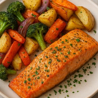 🍣 Baked salmon with roasted vegetables